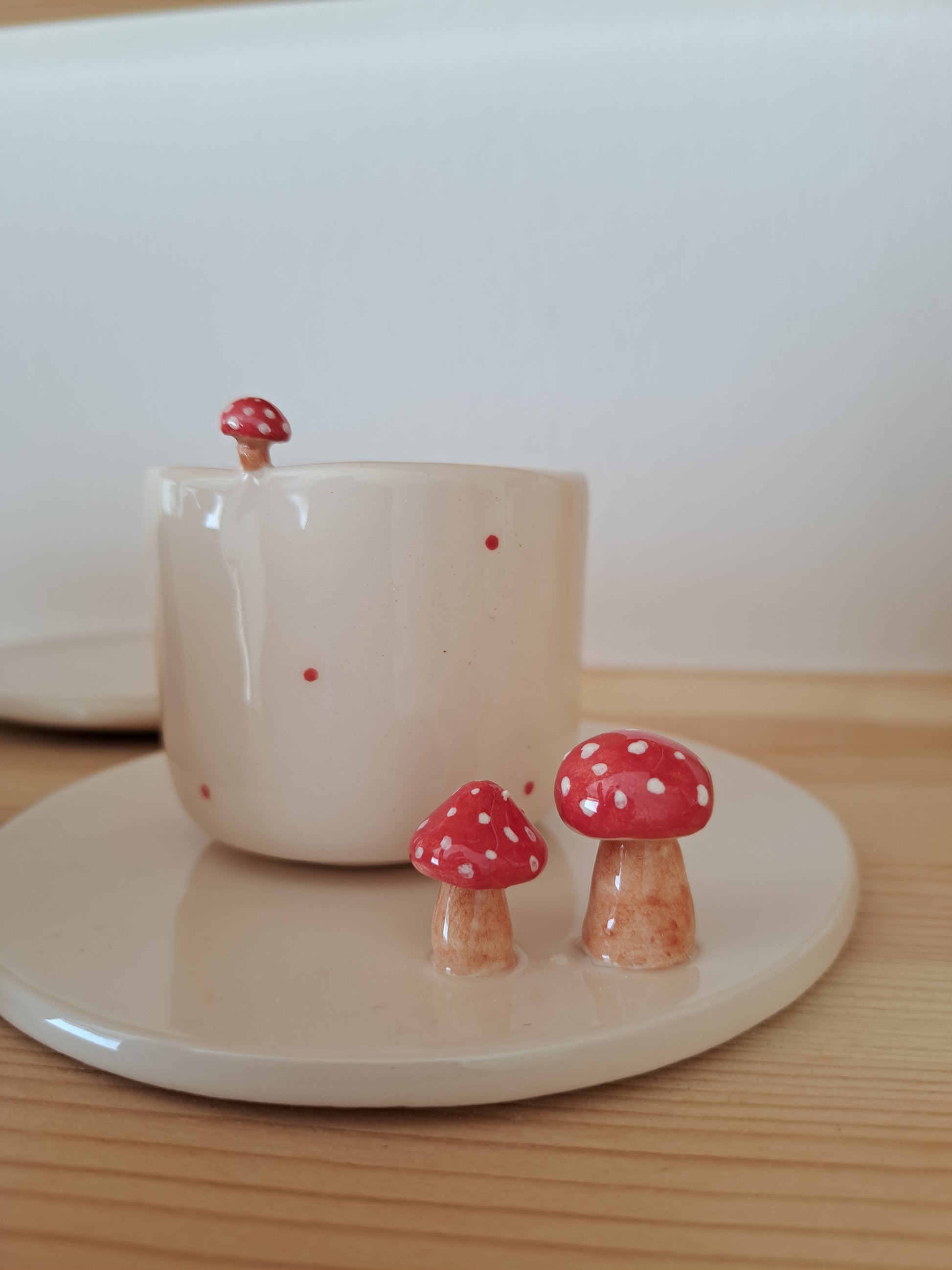PACK Chávena de café expresso e base redonda com 2 cogumelos