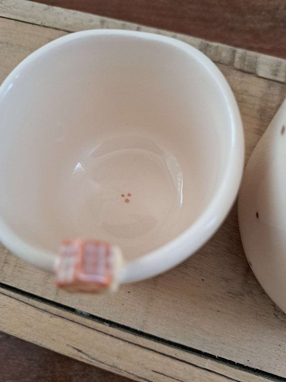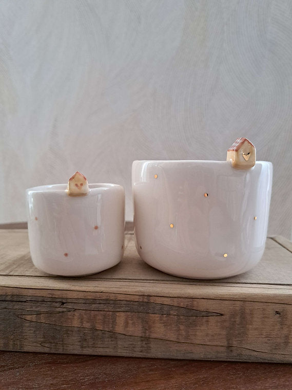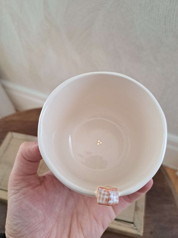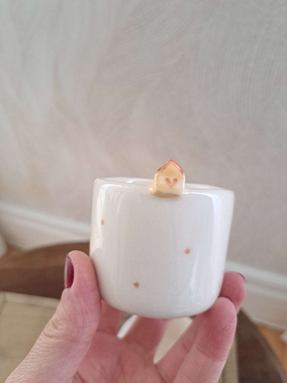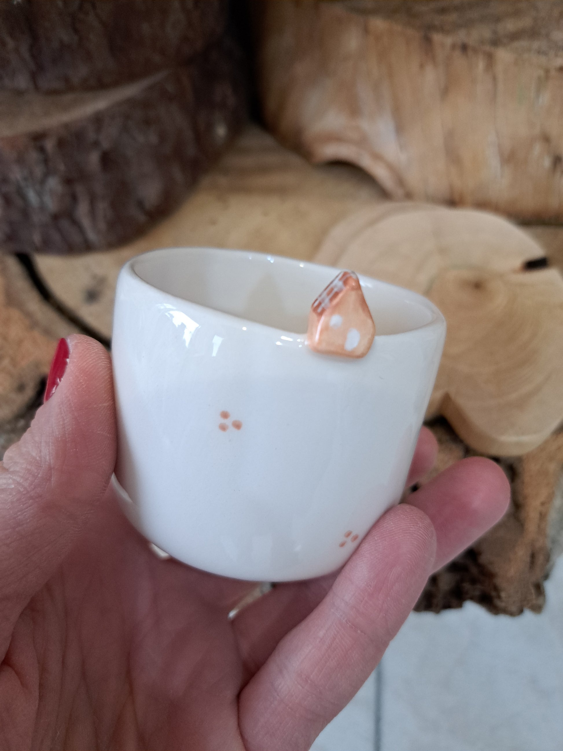 Chávena com aplicação de cookie house no rebordo + pintas ou detalhes em ouro de 8k.