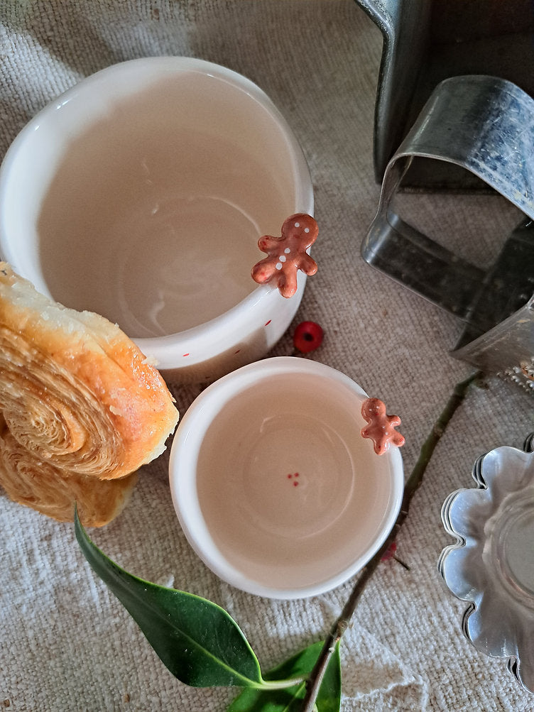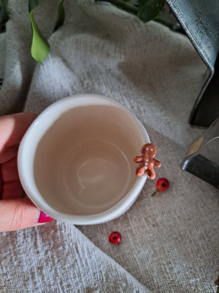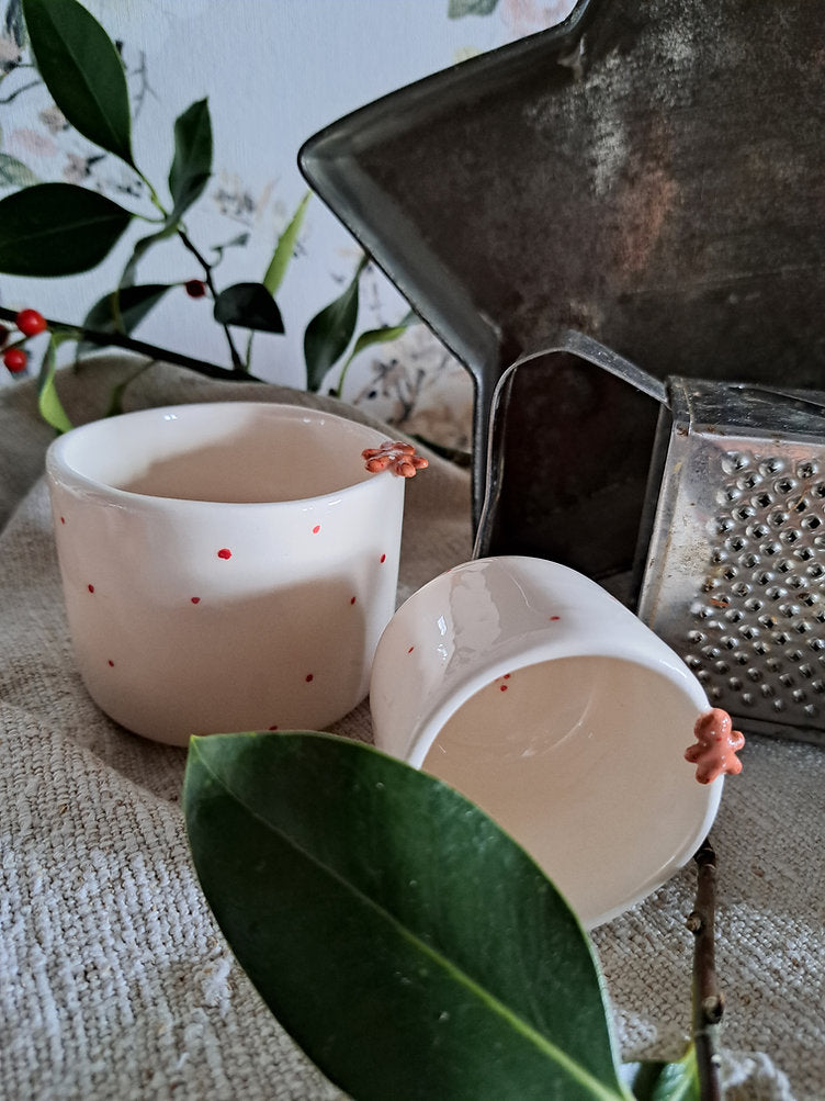 Chávena com aplicação de ginger cookie no rebordo + pintas no exterior.